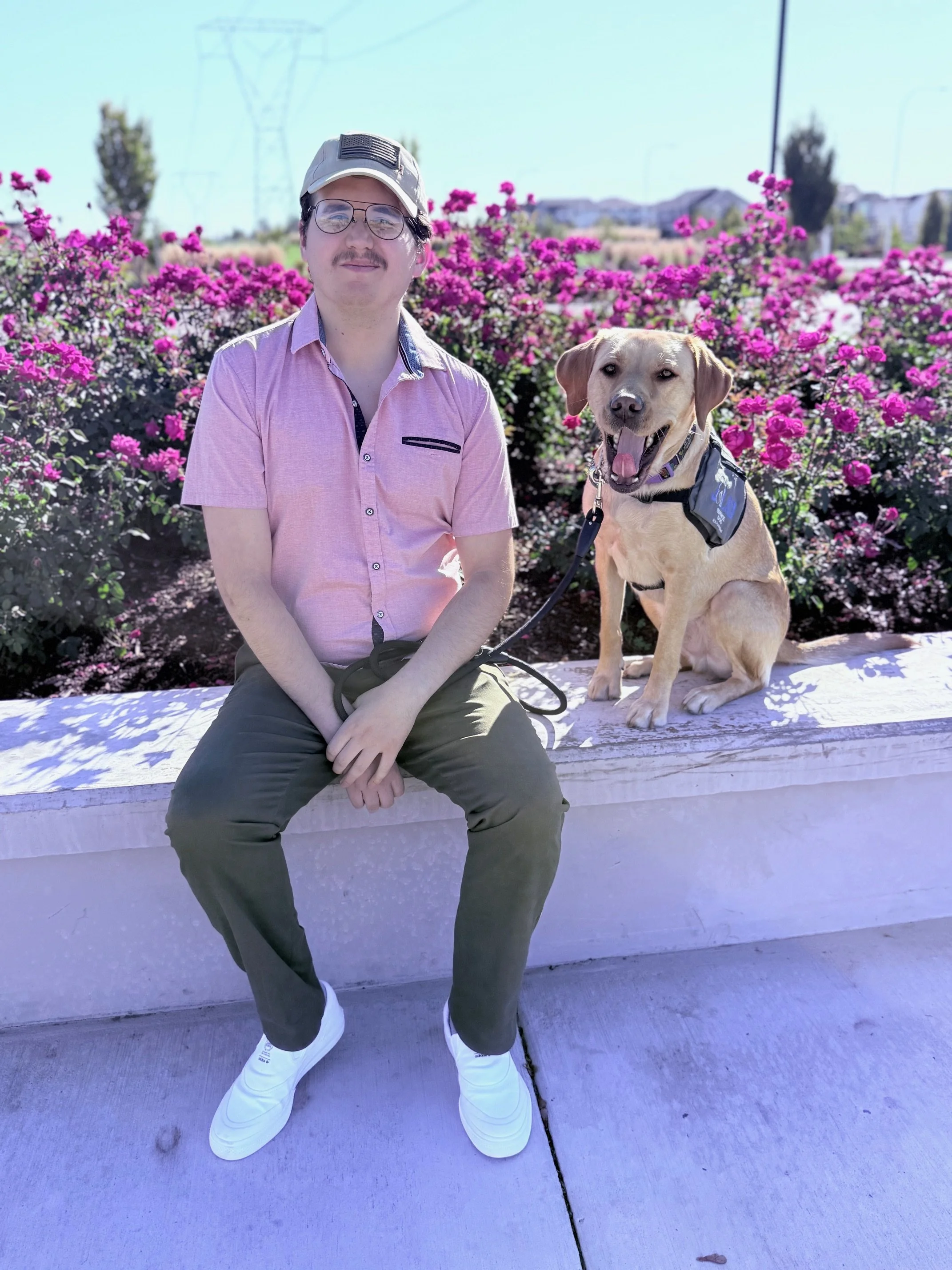 Over the next year, Dallas rebuilt his life—again. He bought a house in March 2025 with his VA loan. Fifteen friends and family members got him completely moved in within one day. Two weeks later, he was fitted with a Myomo robotic exoskeleton arm to help him regain movement in his right arm. In May, he was paired with a JLAD service dog, Irvin, who hasn’t left his side since.